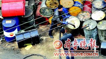 來源:齊魯晚報[提要] 白色塊狀物,一添可改變廢機油顏色 3月9日下午2時許,一輛滿載鐵皮油桶的白色卡車開進濟南張莊路的一個院子里,同時,紅色鐵門應聲關閉。3月10日下午3點鐘左右,在附近的記者和民警發(fā)現(xiàn),一輛白色廂式貨車開進了汽修廠院子,接著廂式貨車的門打開,工人從上面卸了幾包油桶。