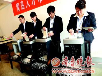本報青島3月15日訊(記者 李曉聞) 15日,青島市人才市場人事誠信調查所將10年來查處的7000余份假學歷證書集中銷毀。這些看上去十分逼真的證書,被4名工作人員一一塞進碎紙機,變成一堆碎紙屑。這是人事誠信調查所成立10年來查獲的所有假學歷,數量占總調查數的10%。目前,島城已有衛(wèi)生、出租、金融等多個行業(yè)整體推行了人事誠信調查。