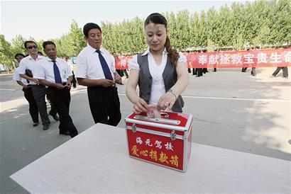 昨日下午,記者在位于靈珠山街道辦事處的青島海元駕校訓(xùn)練場地看到,70名工作人員排著隊(duì)向愛心捐款箱里捐出自己的心意!拔覀冞@幾天一直關(guān)注早報的報道,今天看到病危產(chǎn)婦順產(chǎn)生下兩個雙胞胎寶寶,覺得真是個奇跡,現(xiàn)在寶寶又進(jìn)入了保溫箱,大人孩子都需要搶救,我們也替這娘仨揪著心,我們希望盡到自己的愛心,能感動上天讓母子3人都能平安渡過難關(guān)!痹擇{校負(fù)責(zé)人薛洪濤告訴記者,經(jīng)過清點(diǎn),70名工作人員共捐款8060元。