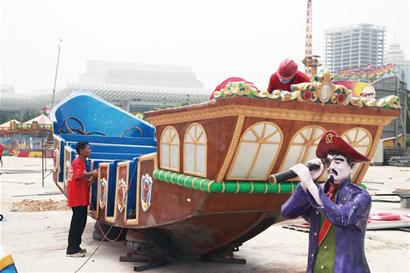 海盜船已動(dòng)工安裝,10天左右就能完工。