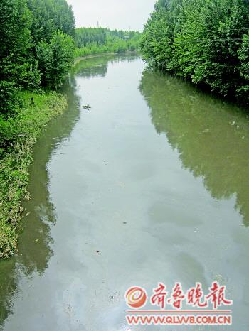 22日下午,在機場路小清河橋上,可以看到河中漂著一片片的油污! ”緢笠娏(xí)記者 劉帥 攝