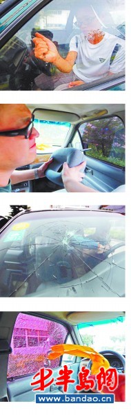 在記者完成實(shí)驗(yàn)后,在網(wǎng)絡(luò)上看到一段視頻:一名紅衣女子將頭枕上的一根鐵管插入玻璃與車門的結(jié)合處,用力一掰,整塊兒玻璃碎落了。就此,青島輪庫汽車服務(wù)連鎖的運(yùn)營總監(jiān)孫先生告訴記者,把鐵管插到玻璃和窗框的縫隙中,用力撬碎玻璃,這種方式是行得通的。