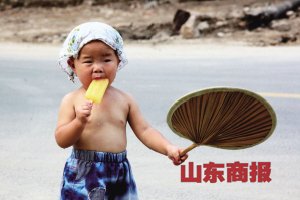 昨日,在省城按察司街明湖小區(qū)社區(qū)里,一個(gè)小孩邊吃冰棍,邊拿著蒲扇,頭頂上還戴著個(gè)毛巾,全副武裝來(lái)避暑 記者 鄭濤 攝