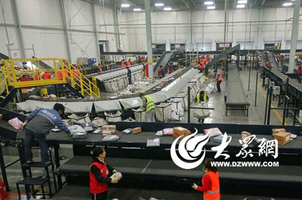 圓通濟(jì)南轉(zhuǎn)運(yùn)中心操作大廳內(nèi)的員工們正忙得熱火朝天。