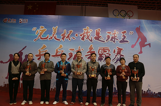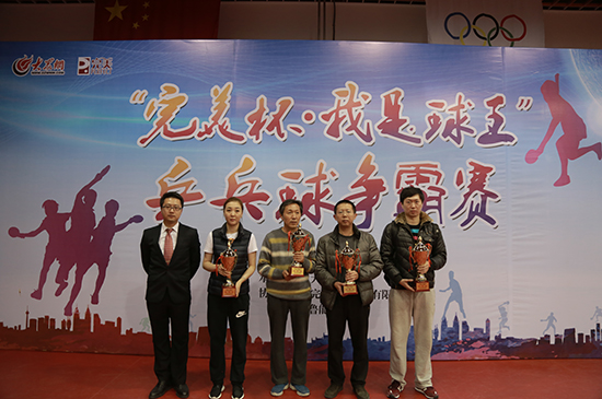 大眾網(wǎng)濟(jì)南11月27日訊(記者 劉小芳)今天下午,由山東省互聯(lián)網(wǎng)傳媒集團(tuán)主辦的2016“完美杯·我是球王”乒乓球爭霸賽在山東省體育局訓(xùn)練中心文東訓(xùn)練基地落幕。省支付清算協(xié)會代表隊(duì)奪得冠軍。大眾報(bào)業(yè)集團(tuán)監(jiān)事會主席張軍,大眾報(bào)業(yè)集團(tuán)戰(zhàn)略運(yùn)營部主任、山東文化產(chǎn)權(quán)交易所董事長曲濤,山東省互聯(lián)網(wǎng)傳媒集團(tuán)大眾網(wǎng)副總經(jīng)理陳月軍分別為奪得冠、亞、季軍的單位頒獎(jiǎng)。