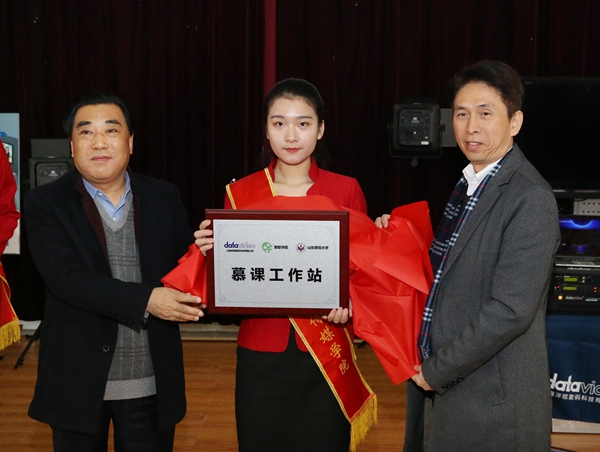 于當(dāng)日上午舉行的開(kāi)幕式暨工作站揭牌儀式中,山東師大副校長(zhǎng)王煥斌對(duì)各位來(lái)賓表示衷心感謝,并就學(xué)校和傳媒學(xué)院的基本發(fā)展情況進(jìn)行了簡(jiǎn)要介紹。他指出,教育信息化是運(yùn)用現(xiàn)代信息技術(shù)促進(jìn)教育改革與發(fā)展的重要手段,學(xué)校高度重視教育信息化建設(shè),組織開(kāi)展了以慕課、翻轉(zhuǎn)課堂為基礎(chǔ)的混合式教學(xué)改革,同時(shí),他希望傳媒學(xué)院以此次教育信息化建設(shè)論壇和工作站成立為契機(jī),凝聚力量、改革創(chuàng)新,開(kāi)拓學(xué)校文化建設(shè)和藝術(shù)教育新陣地,進(jìn)一步彰顯學(xué)校風(fēng)采和辦學(xué)特色。隨后,王煥斌校長(zhǎng)、林鴻銘董事長(zhǎng)、張彩玲總經(jīng)理等人為山東師大慕課工作站、青聯(lián)學(xué)院V創(chuàng)影像實(shí)驗(yàn)室、上海洋銘數(shù)碼科技山東師大培訓(xùn)基地進(jìn)行了揭牌。揭牌儀式結(jié)束后,青聯(lián)學(xué)院與洋銘數(shù)碼科技分別進(jìn)行了公司介紹和產(chǎn)品展示,現(xiàn)場(chǎng)氣氛十分熱烈。