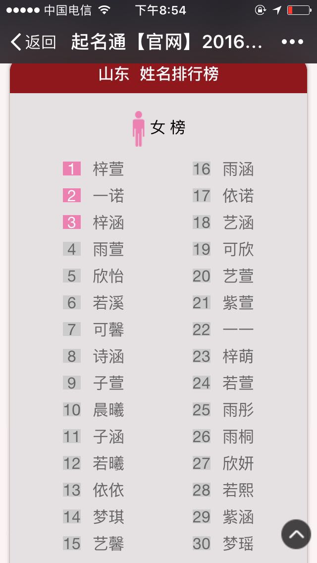 那么,山東地區(qū)的父母們愛給寶寶娶什么名字呢,這些top榜單中,是否也有“爆款”呢?