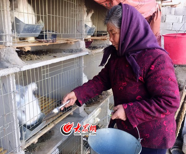 1月10日,冬日的暖陽照耀著臨沂市蒙陰縣舊寨鄉(xiāng)殷家?guī)X村的農(nóng)家小院,72歲的徐美鳳在兔籠前忙忙碌碌地給兔子喂食、添水。