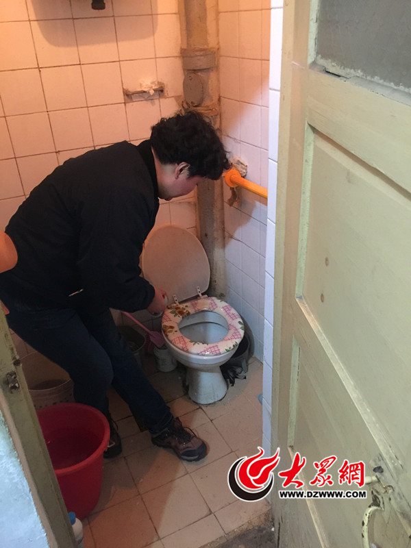 廁所太窄,馬珂只能側(cè)著身子清掃。