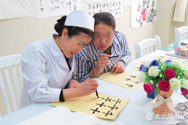 做完手工之后,部分患者又來到棋牌書畫治療室,開始練字、畫畫。李清華說:“做手工、練習(xí)書畫,可以提高患者的認(rèn)知功能和社交技能,為患者社會功能的恢復(fù),早日回歸社會奠定基礎(chǔ)。”