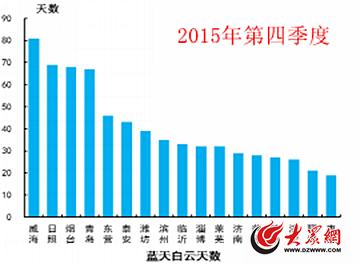 2015年第四季度山東17市“藍(lán)繁”天數(shù)統(tǒng)計情況。