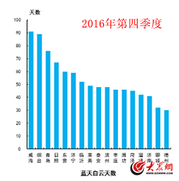 2016年山東“藍(lán)繁”天數(shù)增加34天,“氣質(zhì)”同比改善9.7%