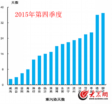 2015年第四季度山東省17市重污染天數(shù)統(tǒng)計情況。