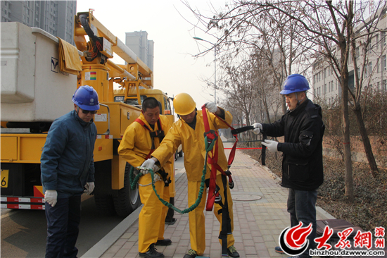 “掛好安全帶。”班長李海濤大聲喊道。1月26日14點20分,在濱州市黃河一路渤海十六路附近的黨校十支線26號電桿,一處螺絲松動引發(fā)刀閘發(fā)熱,很容易燒斷線路,嚴(yán)重的話會影響大線路安全運行,濱州供電公司配電運檢室?guī)щ娮鳂I(yè)班的李海濤、張默迪、湯洪沂和常龍龍正在進行帶電作業(yè)。