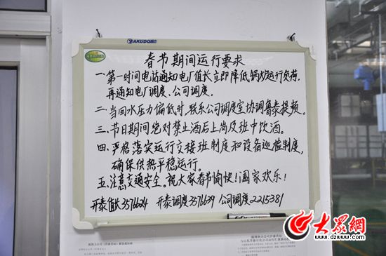 魏林寫在操作間里的春節(jié)運(yùn)行要求