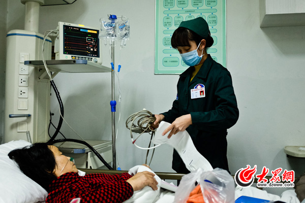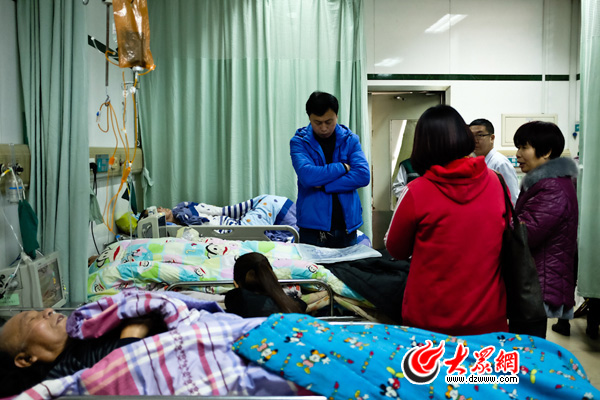 匆匆吃過早飯,大眾網(wǎng)記者便直奔淄博市中心醫(yī)院。一踏進(jìn)急診科,門外濃濃的“年味兒”就蕩然無存了——在患者身邊陪護(hù)的家人個個愁眉緊鎖,一臺臺心電監(jiān)護(hù)設(shè)備工作著,急診科的“綠衣人”們忙著照顧患者,幾乎無暇與記者交流,往往一個話題剛開頭,就急匆匆走開了……記者拿過記錄表一看,在過去24個小時內(nèi),這里共收治了四五十名患者,其中很多危重患者。