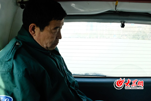 在救護(hù)車返程路上,56歲的擔(dān)架工任師傅坐著打起了盹兒。