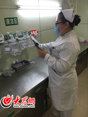 “從8點到現(xiàn)在你還沒喝口水!庇浾哧P(guān)心地問。核對藥物、兌藥、打針,近兩個半小時的工作期間,秀秀還沒停腳,連喝口水的時間也沒有。