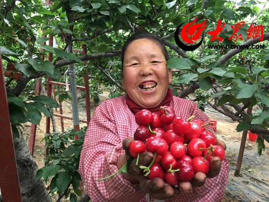 今年大櫻桃豐收,合作社工作人員喜笑顏開(kāi)。