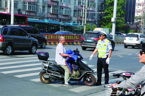 交警對違法過馬路的非機動車車主進行查處 記者 張舒攝