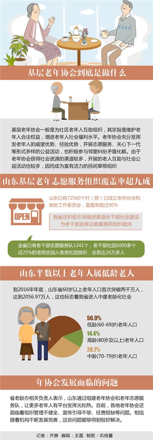 隨著中國人口結(jié)構(gòu)日趨老齡化,越來越多的人到了退休年齡。截至2016年底,山東省低齡(60-69歲)占56.9%,中齡(70-79歲)老年人口占28.7%,高齡(80歲及以上)老年人口占14.4%?傮w來說,山東老年人口的年齡結(jié)構(gòu)相對年輕,半數(shù)以上老年人屬于低齡老人。