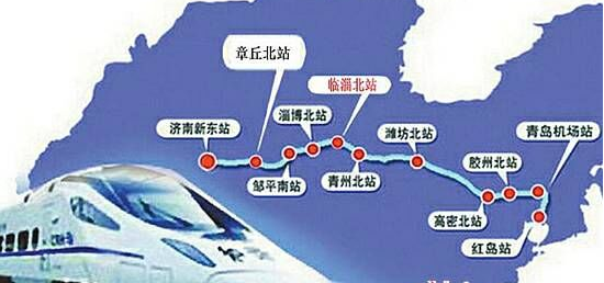 濟(jì)青高鐵貫通山東半島,自濟(jì)南新東站引出,經(jīng)章丘、鄒平、淄博、青州、濰坊、高密、膠州,引入青島鐵路樞紐紅島站;設(shè)濟(jì)南新東站、章丘北站、鄒平站、淄博北站、臨淄北站、青州北站、濰坊北站、高密北站、膠州北站(改擴(kuò)建)、青島機(jī)場(chǎng)站、紅島站11個(gè)站 ,線路全長(zhǎng)307.9公里。