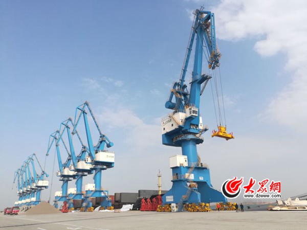 在濰坊港中港區(qū)的18號(hào)至21號(hào)泊位,碼頭上吊裝作業(yè)正在順利進(jìn)行