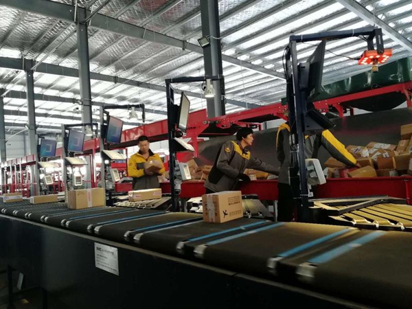 在韻達(dá)快遞臨沂轉(zhuǎn)運(yùn)中心,交叉帶自動分揀機(jī)正在分揀包裹,工作人員將包裹掃描后放到供包臺上,隨傳輸帶運(yùn)行的包裹就會被自動分揀到位于兩側(cè)、相應(yīng)的集包中。臨沂韻達(dá)快遞有限公司總經(jīng)理張利豹對記者說,今年10月份,他們投資580多萬購進(jìn)了這套設(shè)備,分揀效率大大提高,以前60多個人每小時能分揀4000—5000件包裹,現(xiàn)在24個人每小時就能分揀1萬件左右,且錯分率僅為1/10000左右,由于人工暴力分揀造成的包裹損壞情況也不會存在。