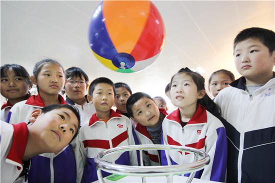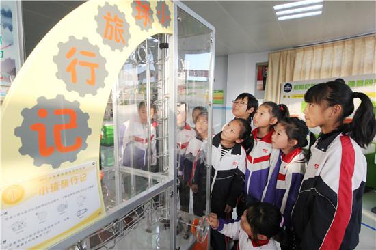 11月13日,無棣縣水灣鎮(zhèn)中心小學,學生們在參觀新建的“校園流動科技館”,體驗小球旅行記。在省直機關(guān)工委派駐無棣縣水灣鎮(zhèn) 三位第一書記幫助下,水灣鎮(zhèn)中心小學“校園流動科技館”于日前正式投用。據(jù)悉,該“校園流動科技館”是山東省今年新增的24所“校 園流動科技館”之一,也是唯一一所建在鎮(zhèn)級學校的“校園科技館”。(新銳大眾記者 盧鵬 通訊員 高士東 報道)