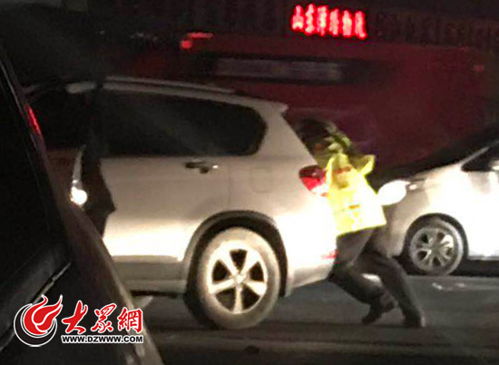 大眾網(wǎng)濟南11月20日訊 近日,一條濟南交警“推車哥”的微博被市民發(fā)到網(wǎng)絡(luò)上,引發(fā)網(wǎng)友熱議。17日下午,濟南歷城交警大隊輔警徐明寶下班后去和朋友聚餐,走到二環(huán)北路時遇到交通擁堵。徐明寶下車走到路口發(fā)現(xiàn)有輛車拋錨,導(dǎo)致路口發(fā)生了插盤。他換上警服先將路口交通疏導(dǎo)開,接著又把故障車輛推到路邊!爱(dāng)時是上坡,那輛SUV比較大,我推不動了就用背靠著車,招乎附近的車主來幫忙!庇惺忻癜堰@一幕拍下來上傳到了微博上,徐明寶說盡管事發(fā)路口不是他的轄區(qū),但這是他的職責(zé)所在。(大眾網(wǎng)-山東24小時記者 賀輝)