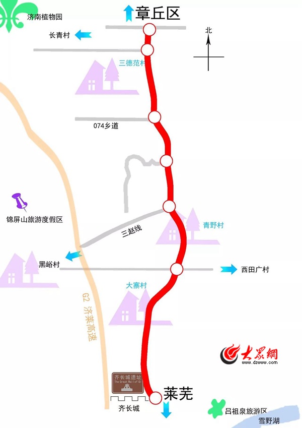 大眾網(wǎng)記者注意到,這條線路沿線旅游資源豐富,古文化遺跡眾多,直通齊長城、平郭城遺址、錦屏山風(fēng)景區(qū)、呂祖泉旅游區(qū),途徑三德范、西王黑、大寨、田廣等歷史悠久古村鎮(zhèn)。不僅如此,從章丘區(qū)到萊蕪雪野湖景區(qū)也僅需15分鐘車程!