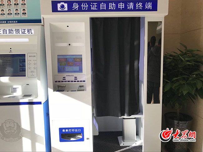 這是歷城區(qū)公安分局戶政大廳內(nèi)的身份證自助領(lǐng)證機(jī),12月8日上午,濟(jì)南市民韓先生僅用1分多鐘,就在這臺(tái)機(jī)器上領(lǐng)到了制作好的新證。
