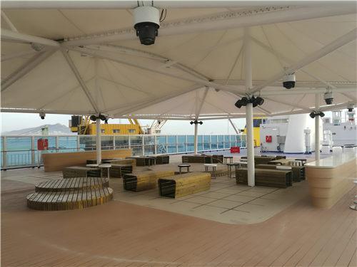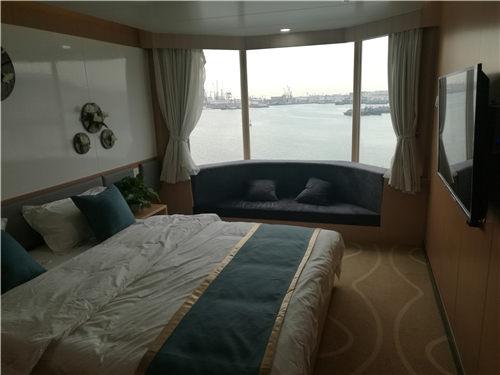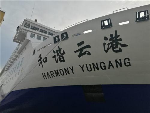 “和諧云港”號是黃海造船有限公司為江蘇連云港一家航運企業(yè)建造的,該船總長196米、型寬28.6米、總噸位為3.4萬噸,乘客定額為1080人,車道長度2480米,航速23節(jié)。該船按照四星級酒店標準裝修,是目前亞洲最大、最豪華的一艘新型客滾船,該船不僅可承擔旅客和車輛運輸業(yè)務,還設有超市、免稅店、酒吧、棋牌室、KTV房、包廂影院等娛樂休閑場所。