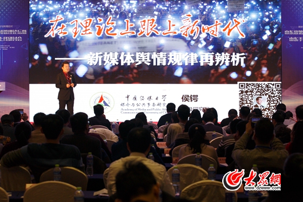 大眾網(wǎng)青島12月15日訊(記者 高忠業(yè) 畢天宇 李佳寧 王悅音)今天下午,以“新時(shí)代下的網(wǎng)絡(luò)輿論環(huán)境營造與輿情應(yīng)對(duì)”為主題的山東省第九屆網(wǎng)絡(luò)輿情管理論壇在青島開幕。在論壇主題演講環(huán)節(jié),中國傳媒大學(xué)媒介與公共事務(wù)研究院高級(jí)研究員侯鍔以“在理論上跟上新時(shí)代——新媒體輿情規(guī)律再辨析”為題,進(jìn)行了主題發(fā)言。他表示,政務(wù)新媒體應(yīng)該跟上新時(shí)代,打造共建共治共享社會(huì)治理新格局,走以人民為中心的“網(wǎng)上群眾路線”。