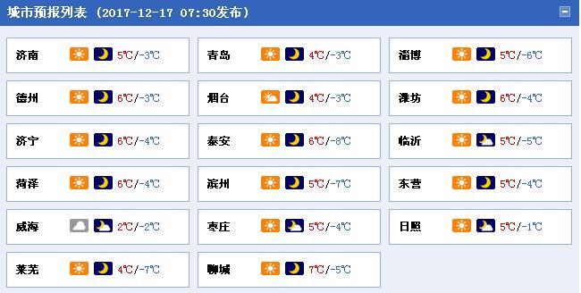 夜間最低氣溫:魯西北、魯中山區(qū)和半島內(nèi)陸地區(qū)-5℃左右,其他地區(qū)-3℃左右。