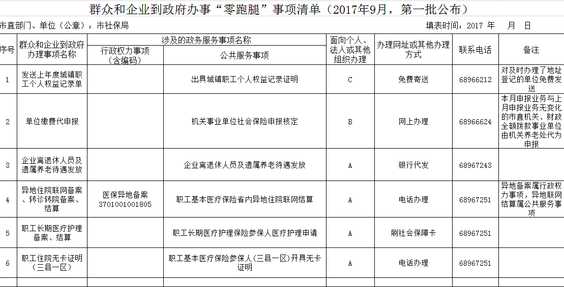 群眾和企業(yè)到政府辦事“零跑腿”事項清單(2017年9月第一批公布)
