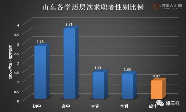 。ㄗⅲ盒詣e比例為該學(xué)歷層次的求職者中,男性求職者與女性求職者的比值,比值越大說明男性求職者數(shù)量比女性求職者數(shù)量越多。因樣本數(shù)量過少,故未統(tǒng)計(jì)博士學(xué)歷。)