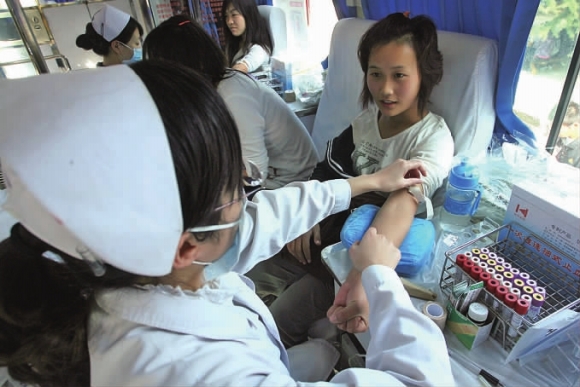 據(jù)青島市中心血站的工作人員介紹,因?yàn)楦鞲咝5姆e極響應(yīng),活動(dòng)首日一共采集血液56820毫升,近200名大學(xué)生積極獻(xiàn)血。