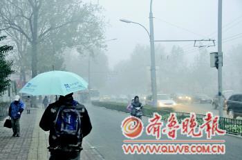 12月下午,濟南被大霧籠罩,同時又淅淅瀝瀝地下起了小雨,小雨的降臨并沒有使霧氣消散,反而加重了濕氣,連日的大霧,讓泉城變成了霧都。本報記者