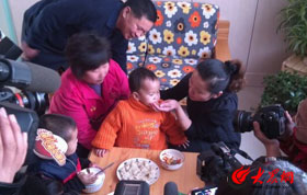 當(dāng)車到了城陽站,果然記者看到眾多的旅客如潮水一般從站臺上涌向了火車。這時列車上的乘客,甚至都不敢輕易地挪腳,生怕一抬腳就沒有再下腳的地方。沒有買到坐票的一些乘客居然能7個人擠在洗漱間狹小的空間里。