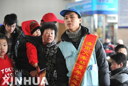 新華網(wǎng)山東頻道1月12日電 春運(yùn)開(kāi)始后,濟(jì)南小伙子李雨晨每天來(lái)到濟(jì)南火車站的愛(ài)心服務(wù)站,熱情地為有困難的旅客查詢車次、指引候車區(qū)、搬運(yùn)行李,以幫助他們順利登上火車,被大家親切稱為“送站哥”。