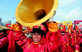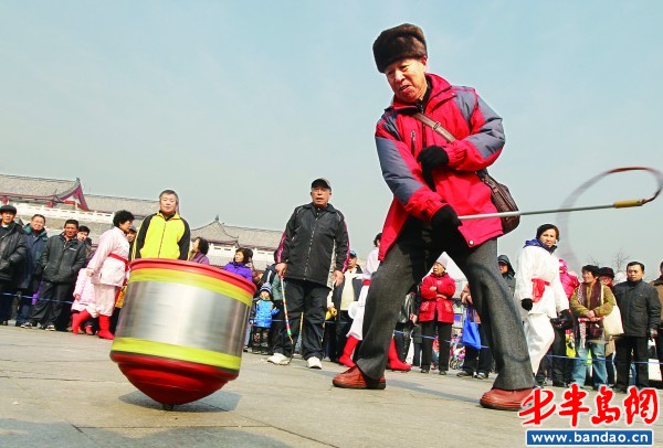 11斤重的陀螺轉(zhuǎn)起來(lái),吸引了眾人眼球。
