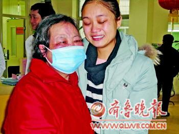 24日,濟(jì)南千佛山醫(yī)院,成功進(jìn)行心臟移植手術(shù)的威海婦女王以紅辦完出院手續(xù)后,和養(yǎng)女林平抱在一起,喜極而泣。兒子、丈夫先后去世,自己又患有先天性心臟病,王以紅多年來時(shí)時(shí)處在危險(xiǎn)中,林平不離不棄,歷盡艱辛,終于為母親帶來了生的希望! ”緢(bào)記者 廖雯穎 攝