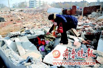 自己毫不知情,房子就被拆了。近日,棗莊市臺(tái)兒莊區(qū)居民薛女士一家就遇到了這樣一件事情。薛女士告訴記者,“沒有接到任何通知,我們什么都不知道,家里的房子就被拆了!眻D為薛女士在廢墟中撿拾衣服! ”緢(bào)記者 李淼 武春澍 攝影報(bào)道