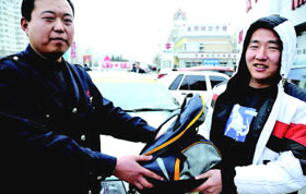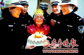 3月6日,濟南天橋交警大隊的民警來到天橋晚晴老年公寓,為百歲老人王朝英過生日,從1992年起,天橋交警大隊民警開始義務照顧老人,至今已20年了,民警們經常幫助老人洗衣、看病,前幾天還帶老人游覽了大明湖。這些年來,交警大隊民警換了一茬又一茬,而照料老人的“愛心接力棒”卻一直延續(xù)著。 圖為6日,王朝英老人在她的交警“兒女”的陪伴下喜過百歲壽辰。 本報記者 陳文進 本報通訊員 黃翌 攝影報道