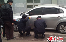▲3月27日下午,青島機(jī)場(chǎng)工作人員展示贈(zèng)送給青島—法蘭克福航線首航機(jī)組人員的紀(jì)念品
