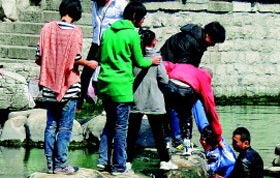 近日,威海國際海水浴場的沙灘上出現(xiàn)大量油污,環(huán)衛(wèi)工人不得不每日清理。而近年來,每逢冬春兩季,這一浴場的沙灘上就會經(jīng)常出現(xiàn)油污。 本報記者 呂修全 攝