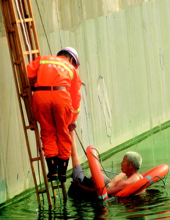 昨(4)日早晨7點(diǎn)多,一名80歲的老人墜入小清河前進(jìn)橋段,60歲的園林工人蔡明池看到后,立即拿起岸邊的救生圈跳入3米多深的河水中,將另一個(gè)救生圈套在落水老人身上,然后等待救援。蔡明池說(shuō),他們?cè)谒械攘舜蠹s40分鐘。接到報(bào)警后,隨后趕來(lái)的民警和消防官兵將他們救上岸。 落水老人隨后被送到山大第二醫(yī)院,并轉(zhuǎn)入重癥監(jiān)護(hù)室。
