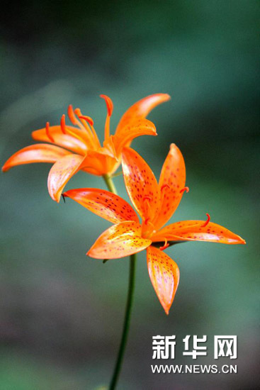 這是6月17日在山東省海陽(yáng)市云頂山拍攝的青島百合。近日,山東省海陽(yáng)市云頂自然風(fēng)景旅游區(qū)發(fā)現(xiàn)已被列入國(guó)家稀有瀕危植物名錄的青島百合,株高最高的達(dá)110厘米,花箭最多的多達(dá)6枝。青島百合又名嶗山百合、山百合等,屬百合科百合屬,為多年生單子葉草本植物。因其分布范圍狹窄,對(duì)生長(zhǎng)條件要求高,現(xiàn)已逐漸稀少,被列入國(guó)家第二批稀有瀕危植物名錄。新華社發(fā)(申吉忠 攝)