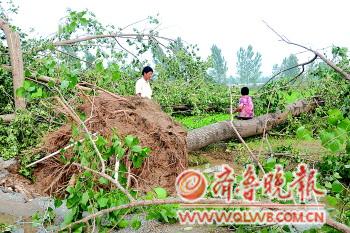12日晚,一場龍卷風(fēng)襲擊了菏澤成武縣,幾十厘米粗的大樹被連根拔起! 嵙(xí)生 袁慧 攝